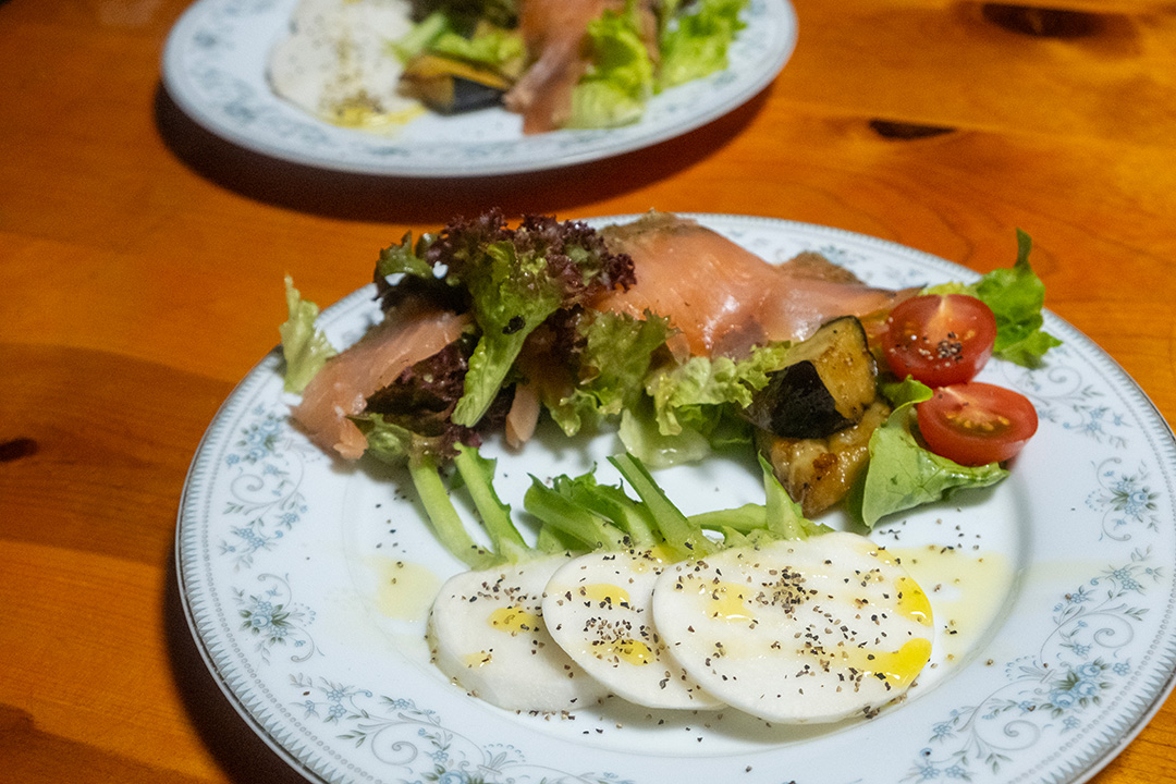 ロロロッサのスモークサーモン添えレモンドレッシングと生サラダラティーナのイタリアンプレート