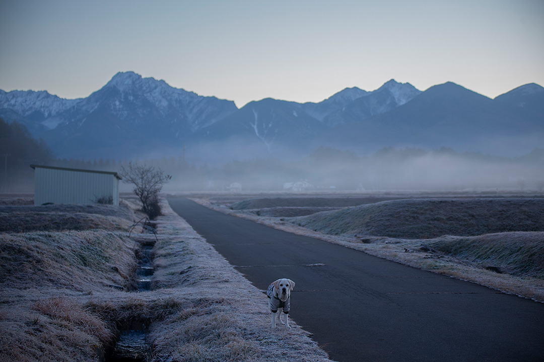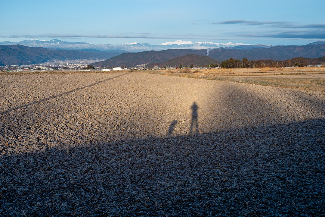 朝日を振り仰いだり、影を横向きにしたり、水溜まりを覗いたり…最近少しずつフォトジェニックを意識し始めたかに見える愛犬