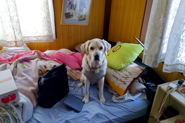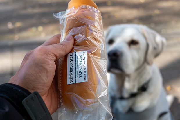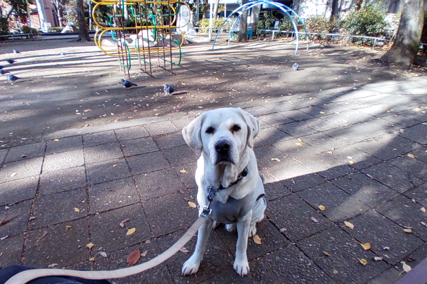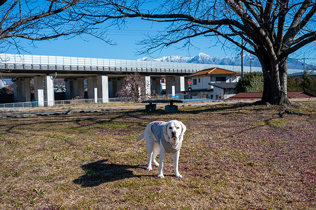 立ち位置まで連れて行って「Wait!」→戻ってシャッター→「OK! Come!」でクッキー半個という手順は変わらず。