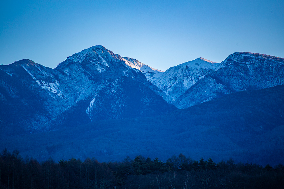 北八ヶ岳の天狗岳が朝日に輝いていた。