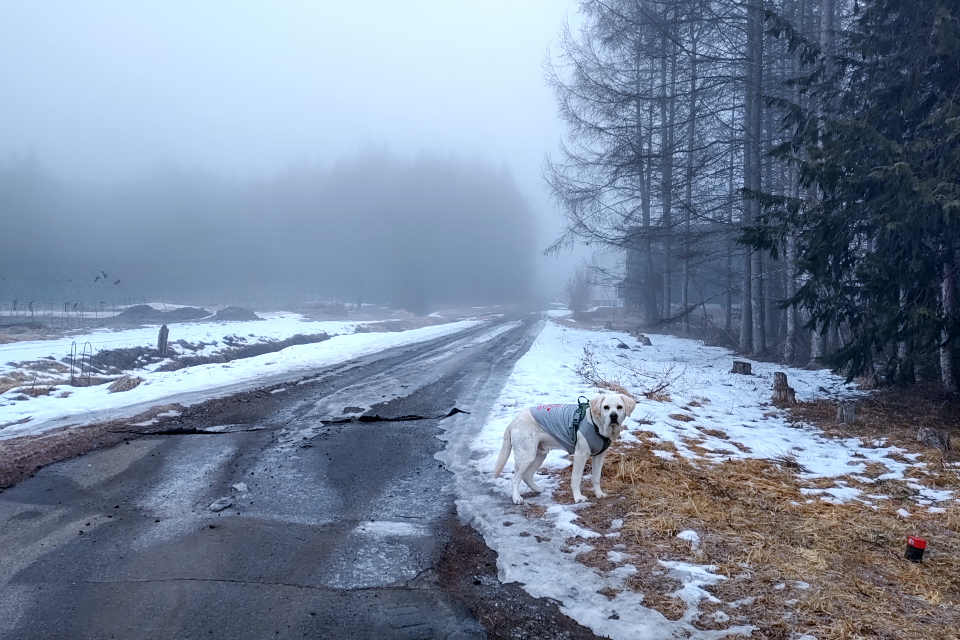 ロールスクリーンをリサイクルセンターまで捨てに行ってビッグに寄った帰り道。小泉山の登山口でローリィを下ろしてやった。