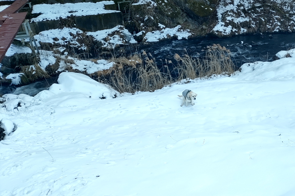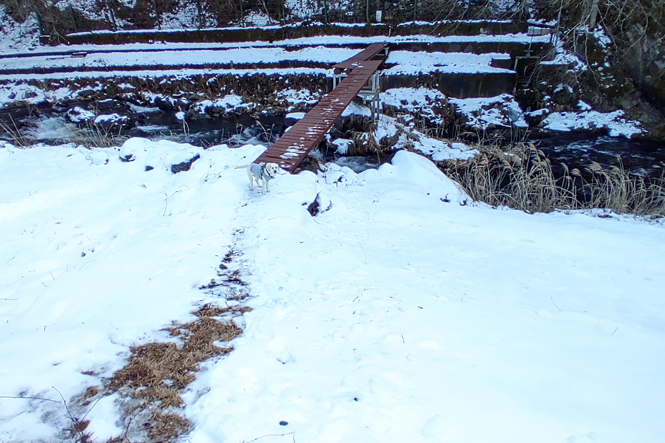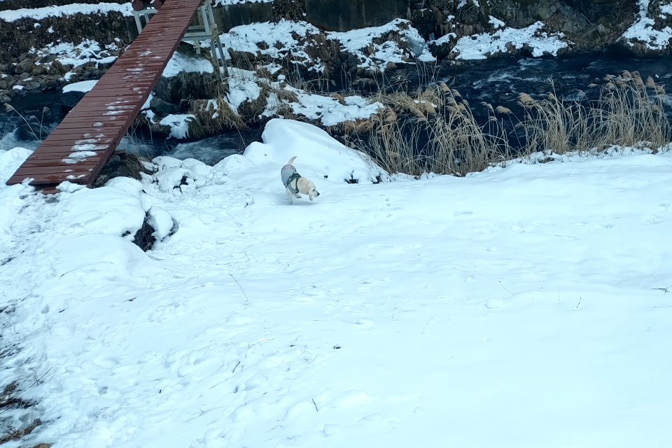 尻尾を振り振り急坂を下っていく。
