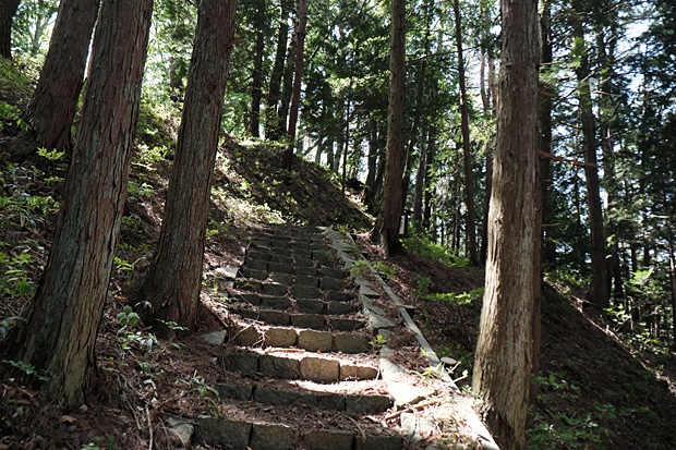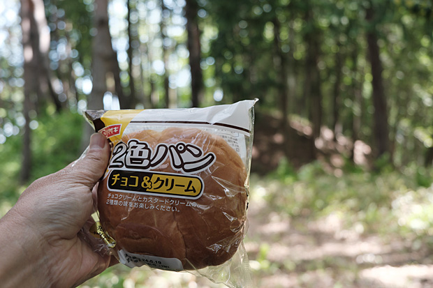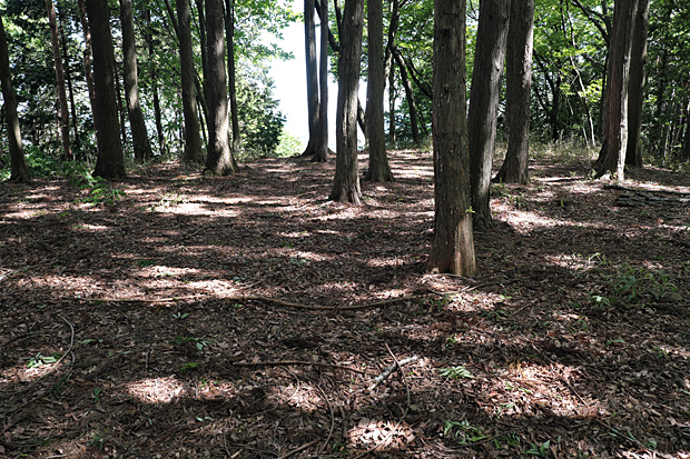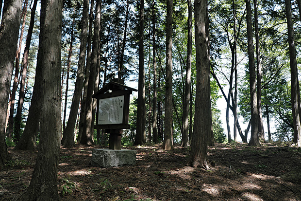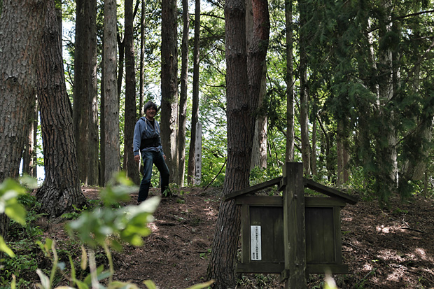 二郭の切り株にミラーレスを置き、セルフタイマーの10秒間に主郭に駆け上ってみた。まるでワカモノの風情であるが、数度のチャレンジは楽しくて慣れないぼっちハイキングの寂しさが紛れる。