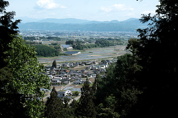 東側の視界が開けて桔梗ヶ原が一望できる。もっとも、かつてはこんなに木が生えてはいないだろうから360度の展望だったろう。