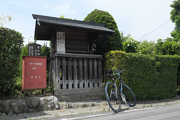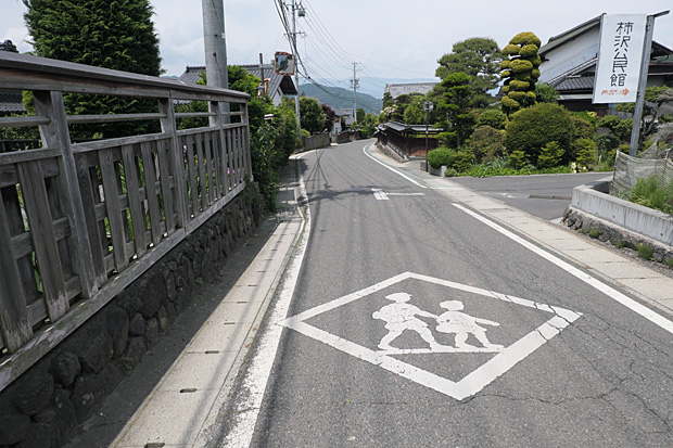 中山道永井坂は由緒ある古道の風情を残す街並みが美しい。気持ちよくスイスイと自転車を流していたら史跡の高札場を通過してしまった。行きはよいよい帰りはこわい。急こう配の坂を戻る。