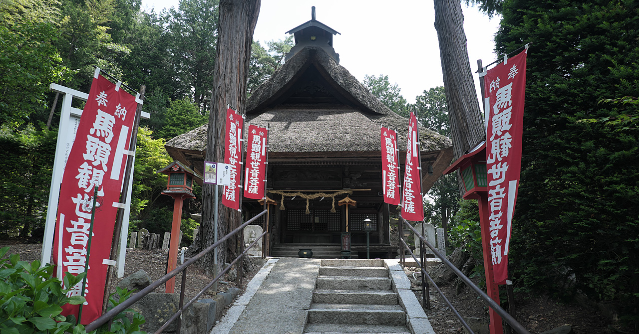 木曾義仲ゆかりの寺である。もっともこのあたりから木曽路にかけて、義仲ゆかり「でない」寺や神社を探す方がタイヘンかもしれない。そんな中でも永福寺はワンランク上に差別化される。なんと行基の作と言われる馬頭観音を本尊として、1521(大永元)年に義仲の子孫木曽義方が義仲の菩提を弔うため創建したという大胆な縁起を持っているのだ。義仲が木曽駒を愛し、馬頭観音を厚く信仰したことは広く知られ、以て神通力を得ていたという伝説まであるくらいだから、行基の馬頭観音を尊崇したことはあり得るというわけだ。寺は江戸時代の火事で全焼したので残念ながら観音像もそのとき焼失してしまって今はない。