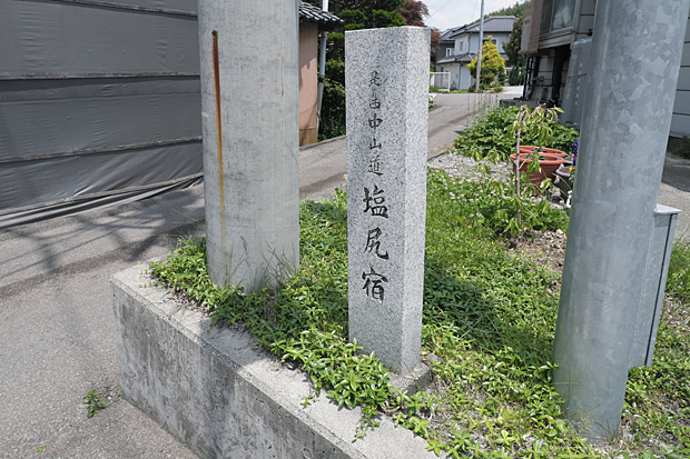 古い道標は「左 塩尻峠 右 中仙道」と読める。ここは三州街道の起点である。三州とは三河の国(愛知県東部)のこと。自転車が出発したみどり湖駅前を通り、飯田を経由して治部坂峠を越え岡崎で東海道に合流する。現在自転車で辿っている153号を逆方向に進めば、三州街道とほぼ同じコースをたどるが、愛知県に入った後は岡崎に向かわず、豊田から西に折れて名古屋まで通じている。
