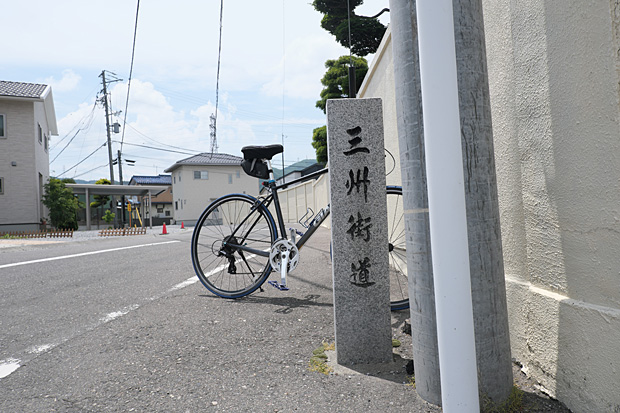 堤からまた住宅街を抜けて国道153号に戻り、わずかに西進すると三州街道という石碑がある。