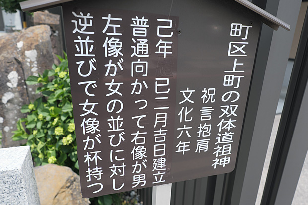 ここに立ち止まったのはほかでもない、十王堂の回りにあったものを集めたと思しき石碑群のなかに案内板付きの双体道祖神を見つけたからだ。脇に文化6年2月とある。