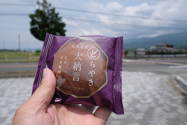 リュックから「どらやき大納言」を取り出した。今日のサイクリング行を聞いたドレミが、ゆうべの帰り道にお菓子屋さんまで遠回りして買ってきてくれた。甘い大納言をむしゃむしゃと噛んでいると、じんわりぼっち旅が実感されて来る。
