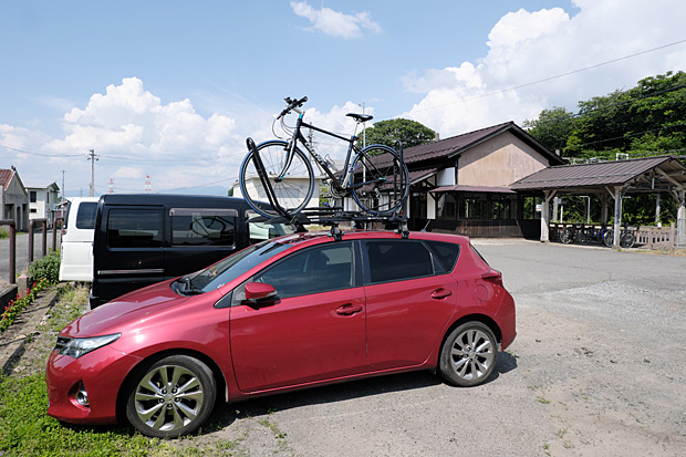 洗馬駅に戻りバイクをオーリスの屋根に積んだ。