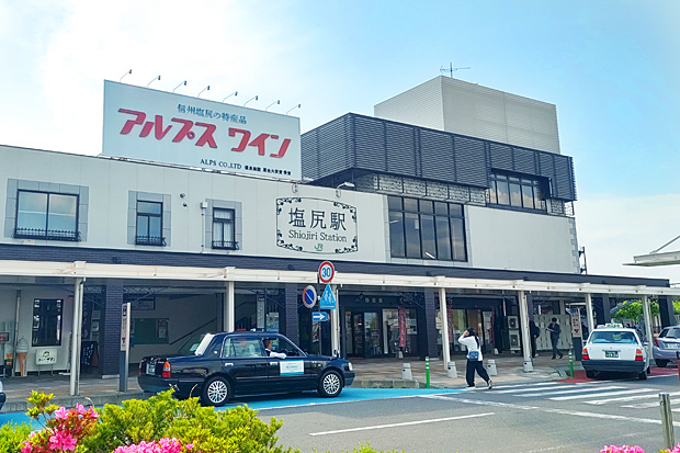 駅舎を出ると桔梗ヶ原の空が美しかった。