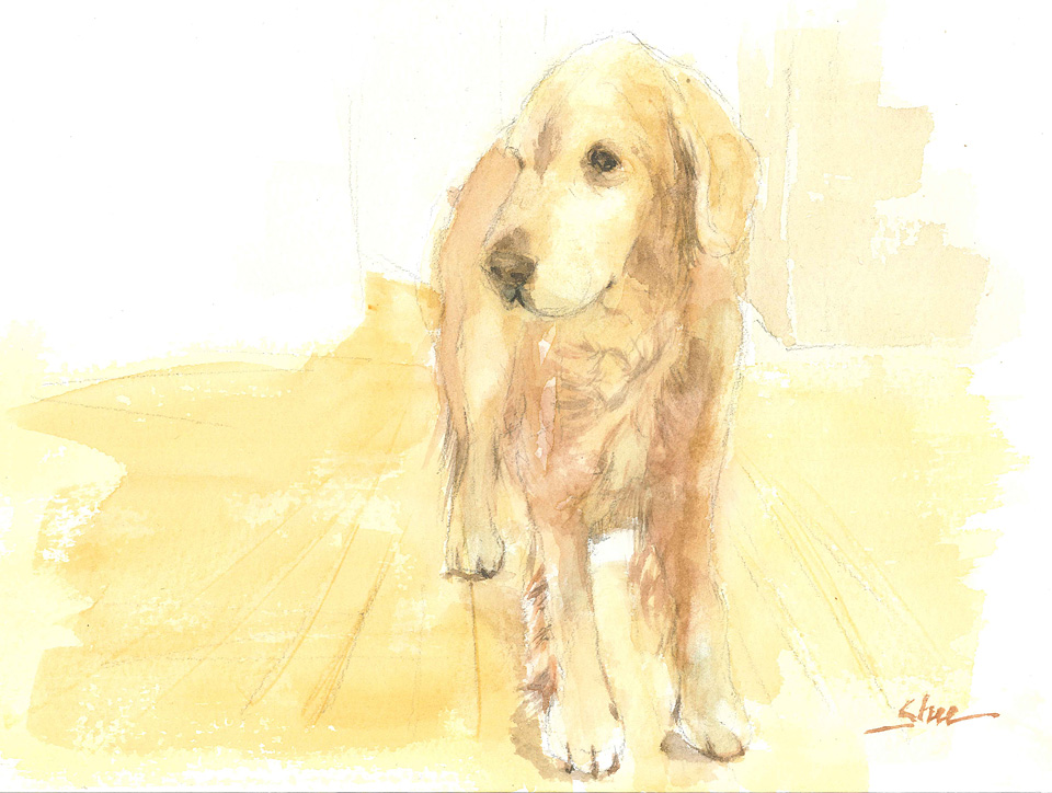 日常のゴールデンレトリバー A5大 Water on WhiteWatson