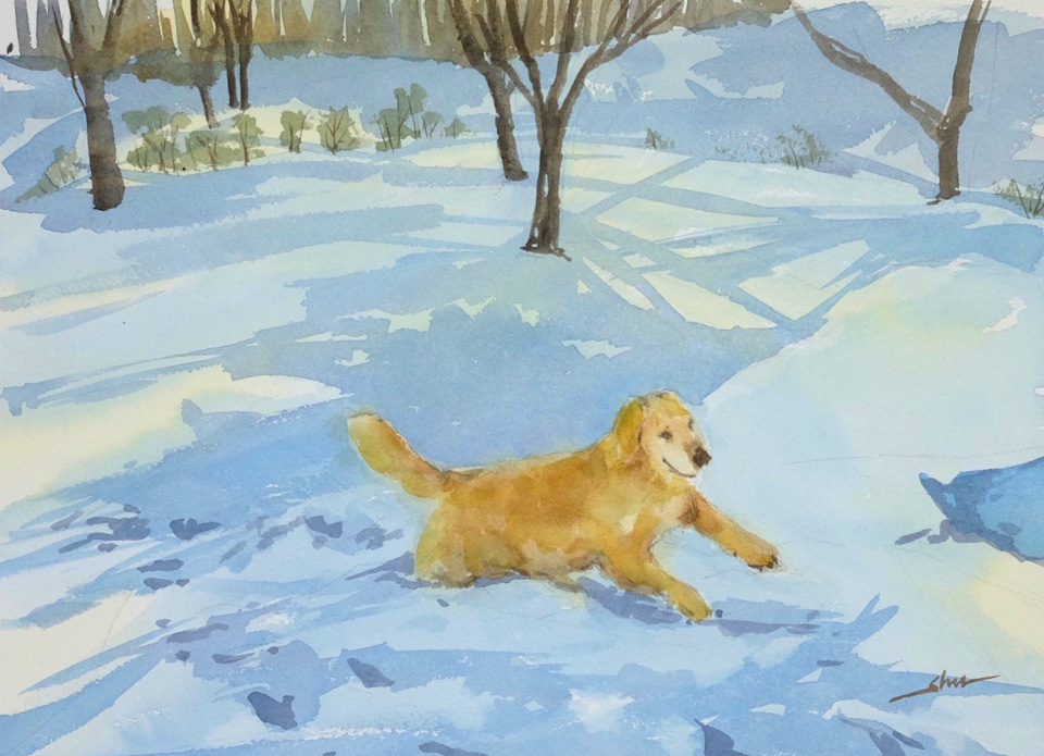 うれしいが止まらないゴールデンレトリバー/ F4大 Water on Waterford