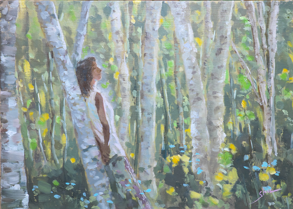 晩夏の白樺林 F4 Oil on Canvas